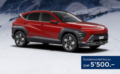 Lagerprämie (Beispiel): KONA MY26 KONA Hybrid Swiss Edition, Energieverbrauch (Fahrbetrieb): 4.8 l/100 km, CO₂-Emissionen (Fahrbetrieb): 109 g/km, CO₂-Emissionen (Fahrbetrieb) aus der Treibstoff- und/oder Strombereitstellung: 22 g/km, Energieeffizienz-Kategorie: C. Barzahlungspreis: CHF 44'350.–, Listenpreis: CHF 48'350.– (Lagerprämie: CHF 4'000.– + Swiss Edition: CHF 1'490.–). Die Summe (Wert) des Rabatts (Lagerprämie) ist modell- und fahrzeugabhängig. Aktion gültig vom 18.12.2025 bis 28.02.2026 und nur solange Vorrat. Die genannten Angebote gelten nur für Privatkunden und nur bei teilnehmenden Händlern. Alle Beträge inkl. MwSt. Unverbindliche Preisempfehlungen, Preisänderungen vorbehalten.