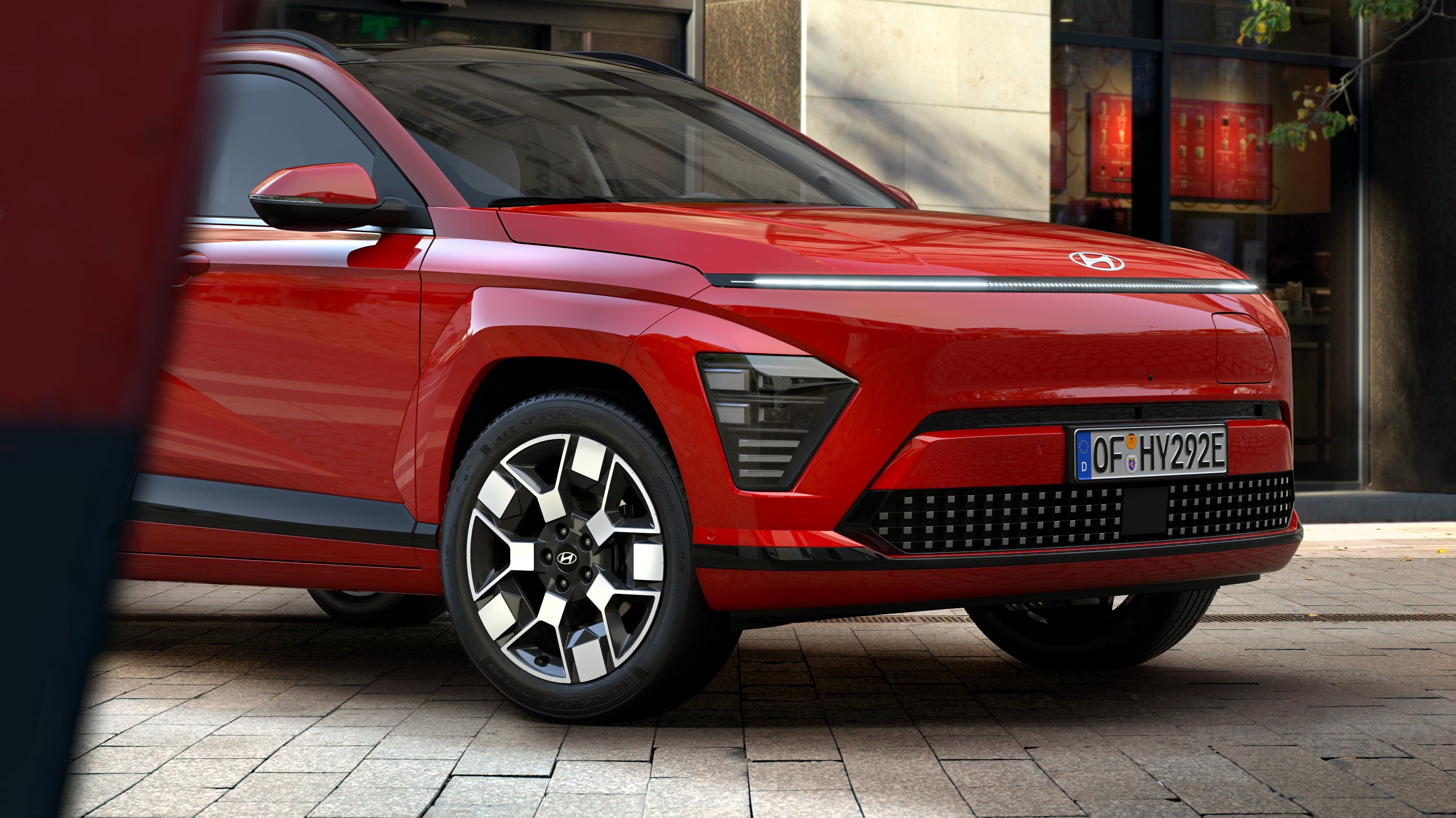 Le profil du Hyundai KONA Electric présente des surfaces paramétriques diagonales très marquées.